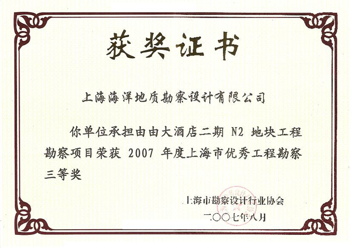 《上海市軌道交通10號線(M1)一期巖土工程勘察、咨詢及數(shù)字平臺開發(fā)應用項目》榮獲2011年度上海市優(yōu)秀工程勘察一等獎