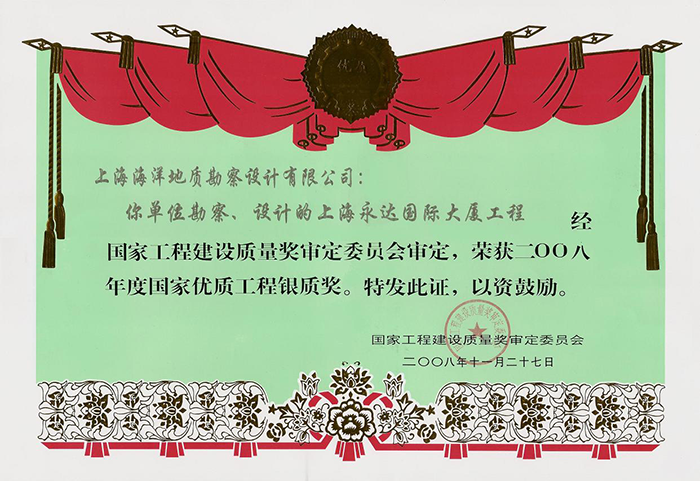 《上海市軌道交通10號(hào)線(xiàn)(M1)一期巖土工程勘察、咨詢(xún)及數(shù)字平臺(tái)開(kāi)發(fā)應(yīng)用項(xiàng)目》榮獲2011年度上海市優(yōu)秀工程勘察一等獎(jiǎng)