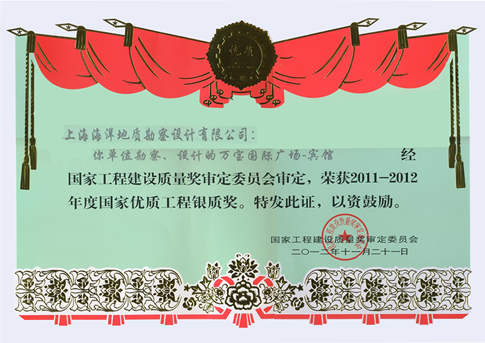 《萬寶國際廣場-賓館》項(xiàng)目榮獲2011-2012年度國家優(yōu)質(zhì)工程銀質(zhì)獎(jiǎng)