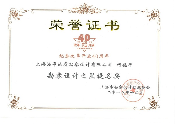 何艷平榮獲“勘察設(shè)計(jì)之星提名獎(jiǎng)”